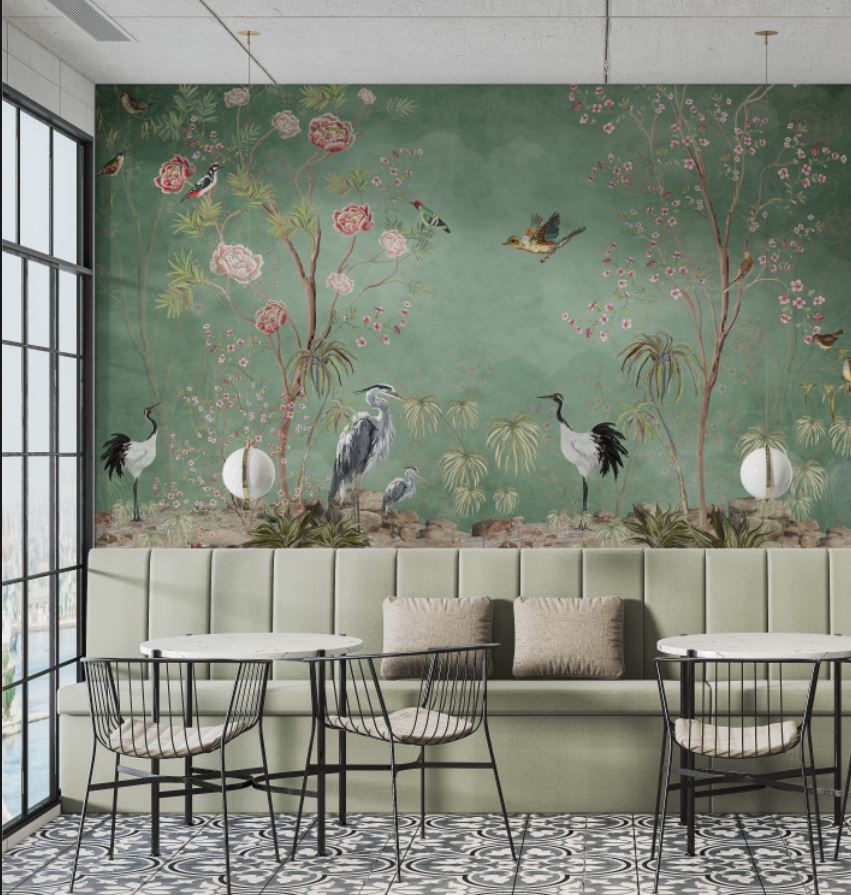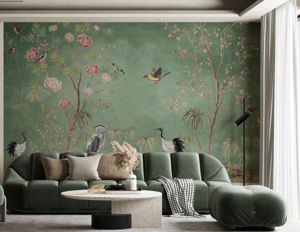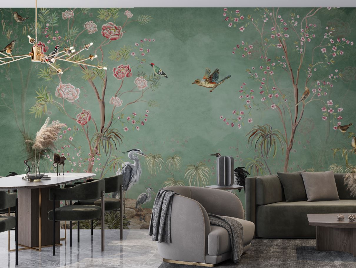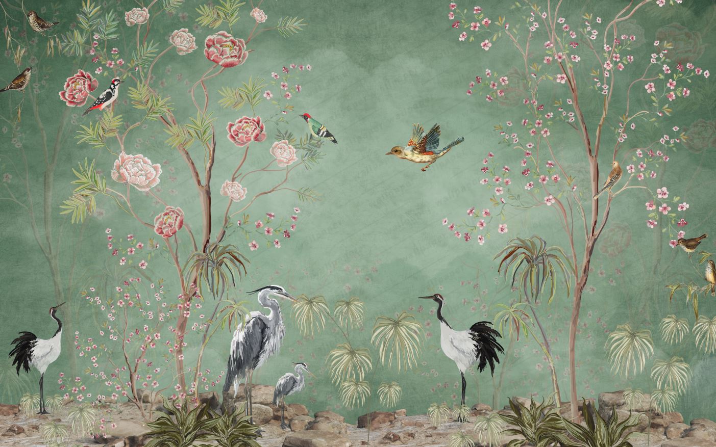 Ağaç Dalları Çiçekler ve Hayvanlar Sanatsal Duvar Kağıdı