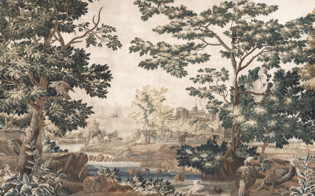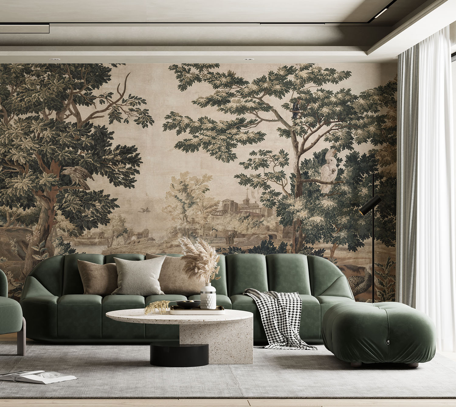 Ağaçlar ve Hayvanlar Antik Tarz Duvar Kağıdı