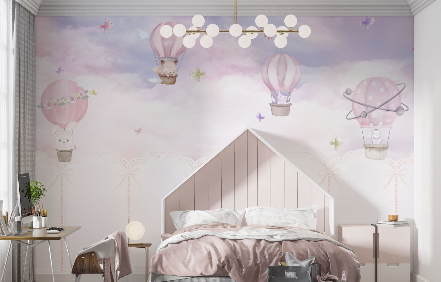 • Alt Kısmı Kurdale Desenli Üst Taraf Uçan Balonlar Çocuk odası duvar kağıdı 3 boyutlu şekilde satın alın!