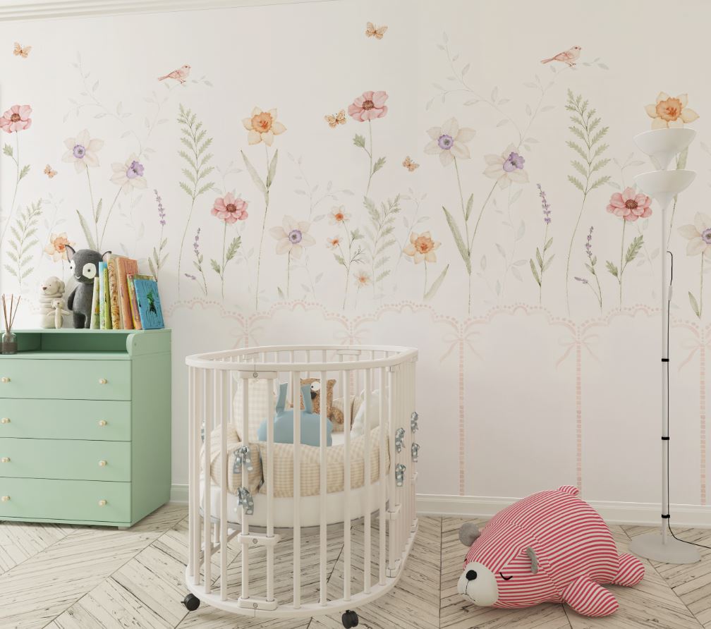 • Altı Kurdaleli üstü Soft renk Çiçekler Kız Çocuk ve Genç Odası Duvar Kağıdı 3 boyutlu şekilde satın alın!