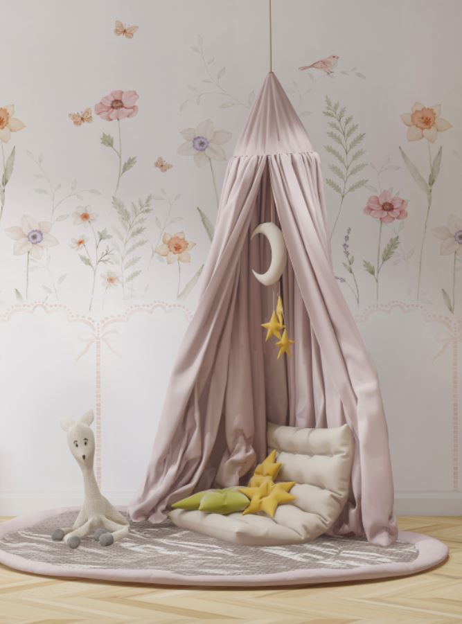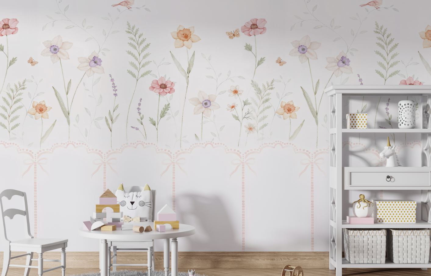 Altı Kurdaleli üstü Soft renk Çiçekler Kız Çocuk ve Genç Odası Duvar Kağıdı