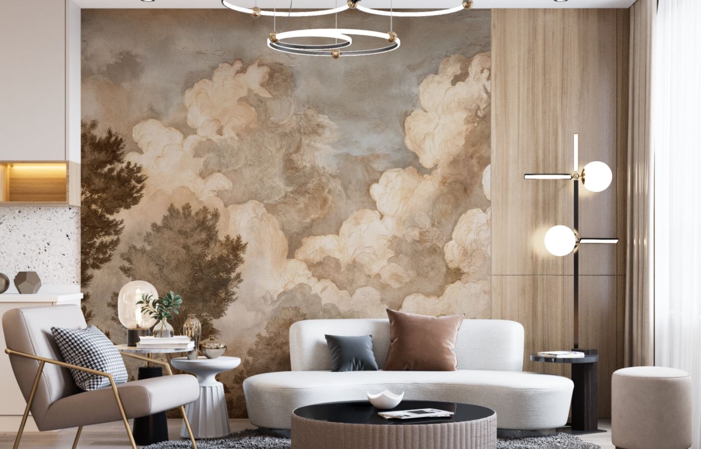 • Antik Ağaçlar ve Bulutlar Manzara Duvar Kağıdı 3 boyutlu şekilde satın alın!