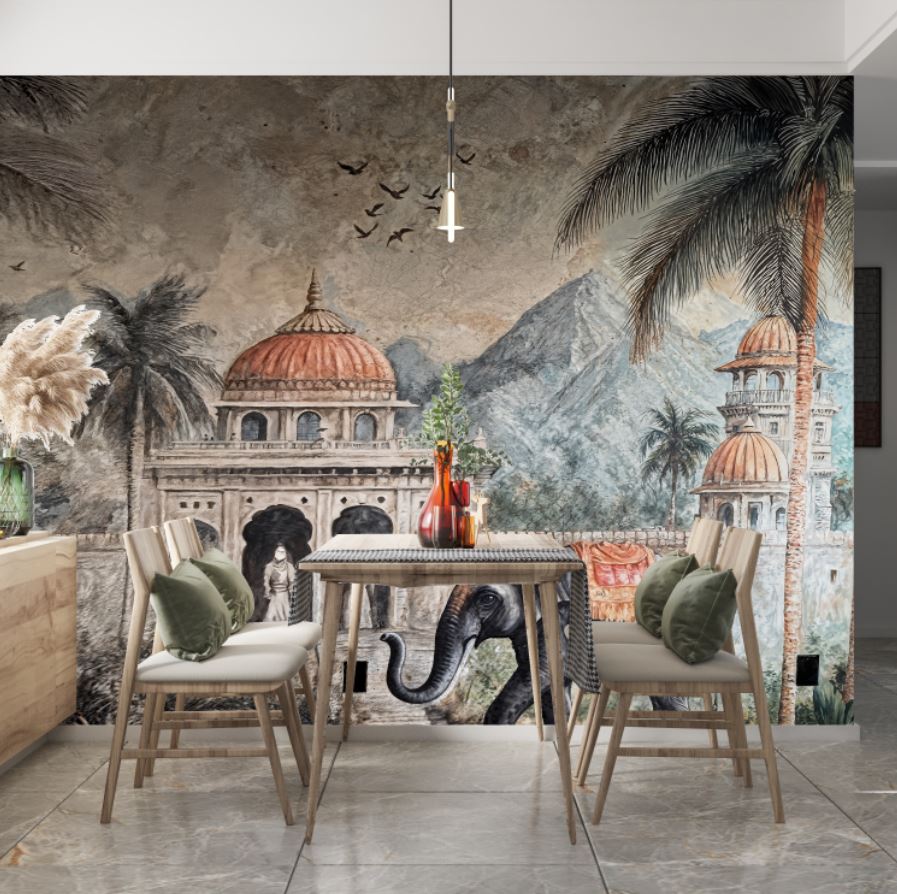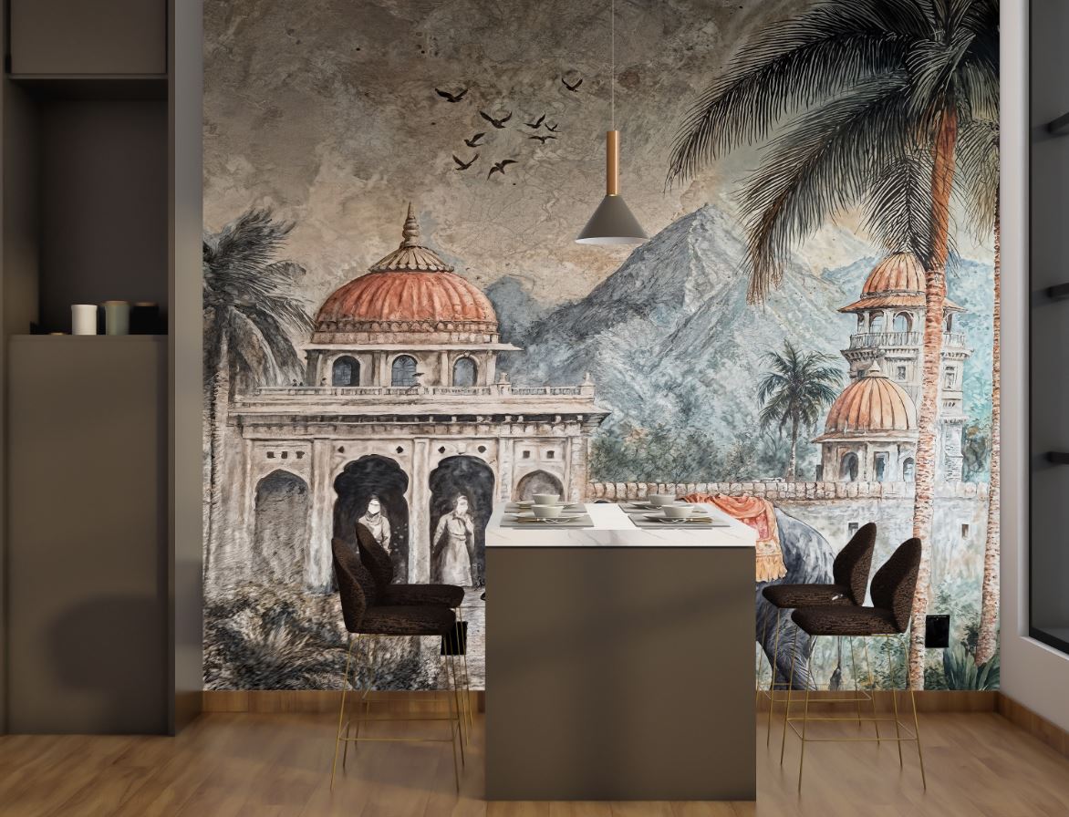 • Antik Bina Dağ ve Ağaçlar Eski Tarz Duvar Kağıdı 3 boyutlu şekilde satın alın!