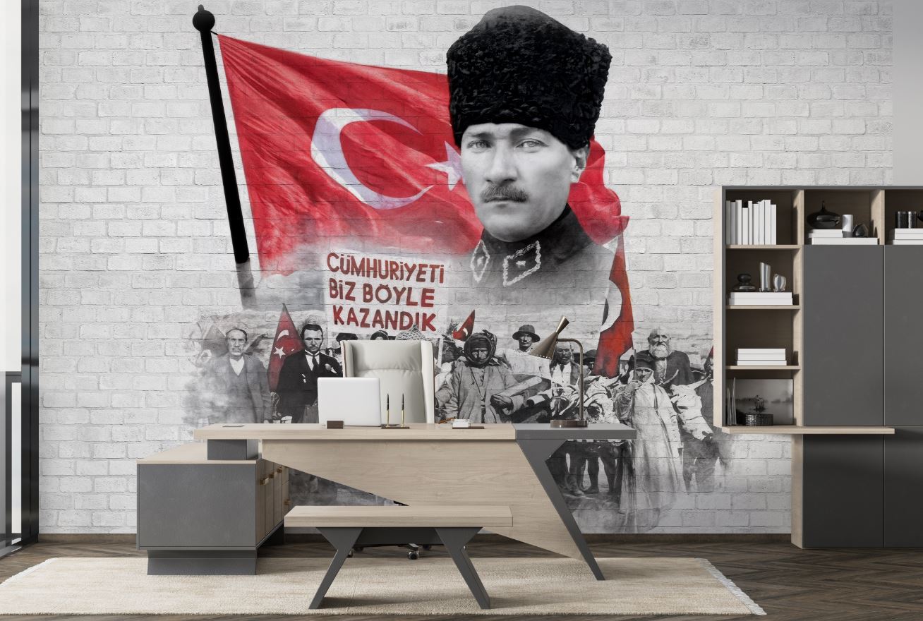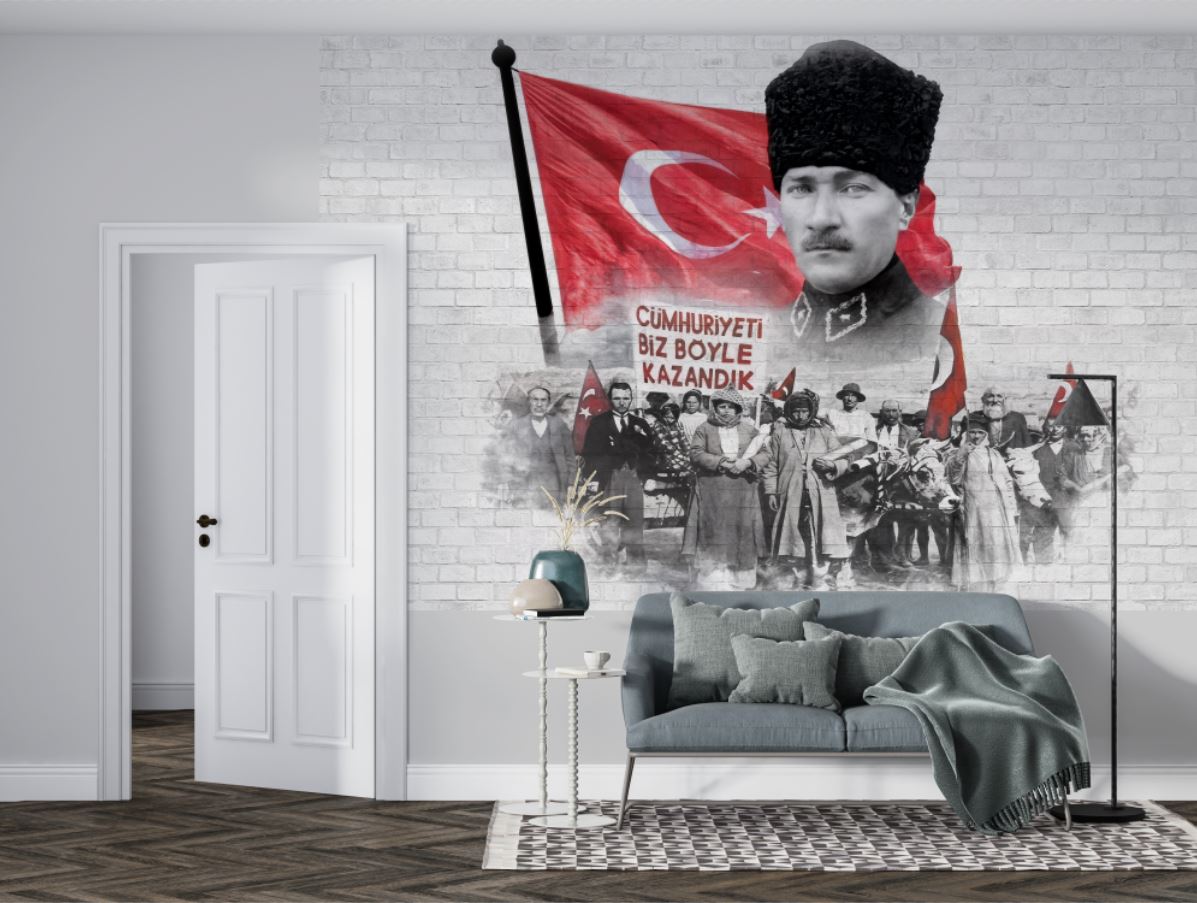 • Atatürk ve Cumhuriyet Temalı Özel Tasarım Duvar Kağıdı 3 boyutlu şekilde satın alın!