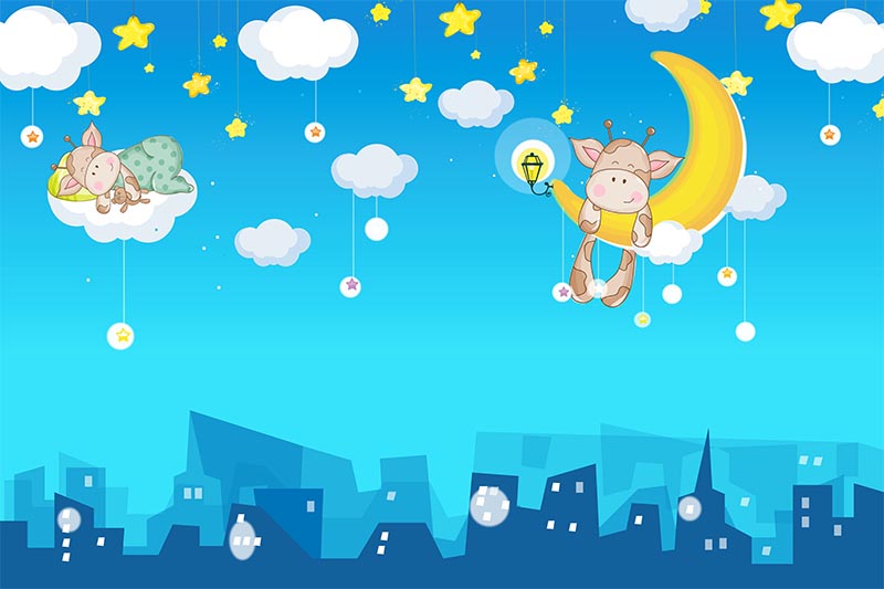 Ay ve Bulut Üzerinde Sevimli Zürafalar