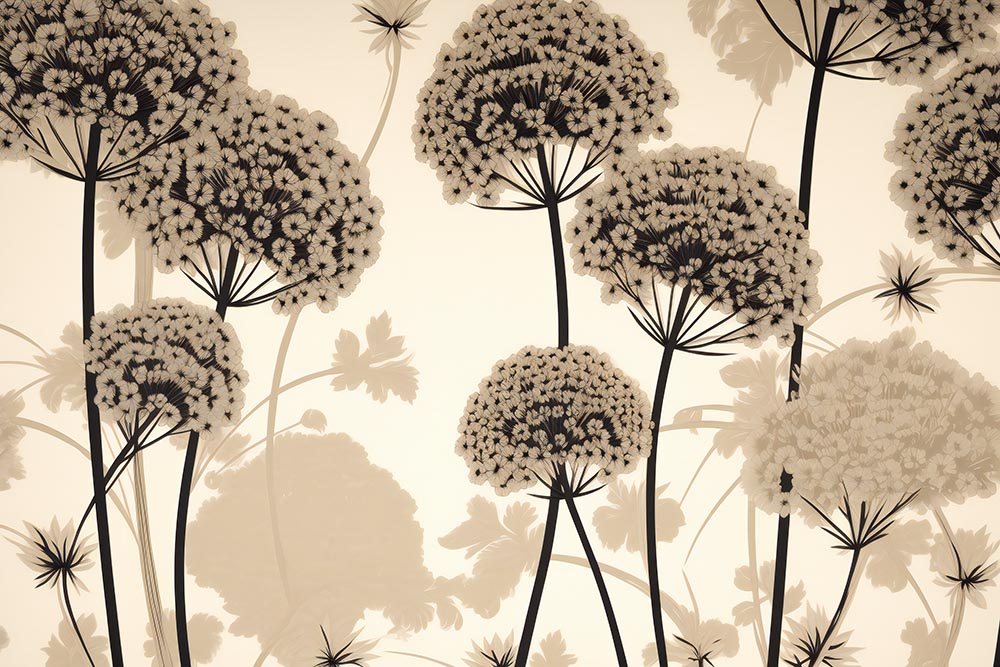 Bej ve Siyah Tonlarında Büyük Çiçekler Duvar Kağıdı