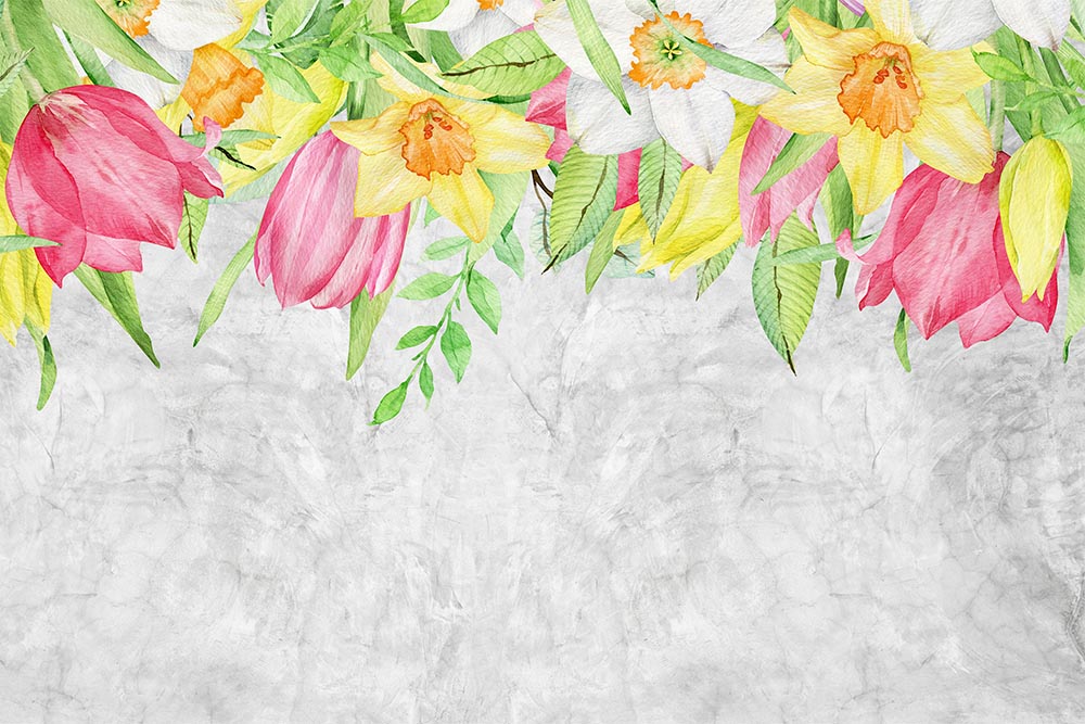 • Beton Zemin Üzerinde Renkli Çiçekler Duvar Kağıdı 3 boyutlu şekilde satın alın!