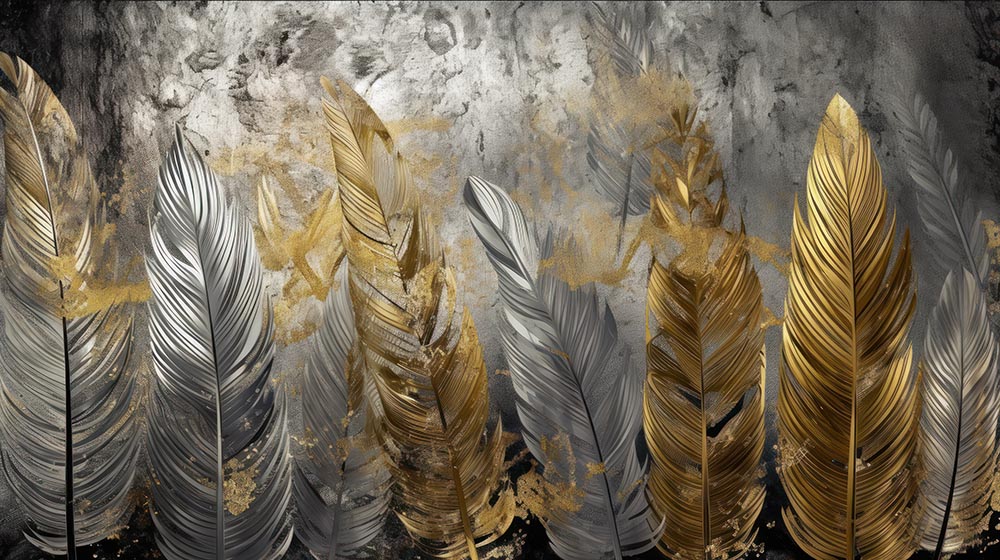 • Büyük Gold Renk Yapraklar Duvar Kağıdı - 3D Duvar Kağıdı 3 boyutlu şekilde satın alın!