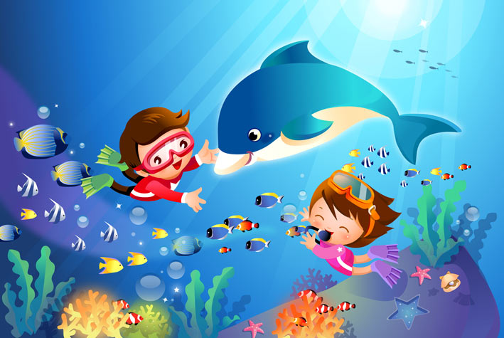 • Sualtında Sevimli Yunus ve Çocuk Duvar Kağıdı 3 boyutlu şekilde satın alın!