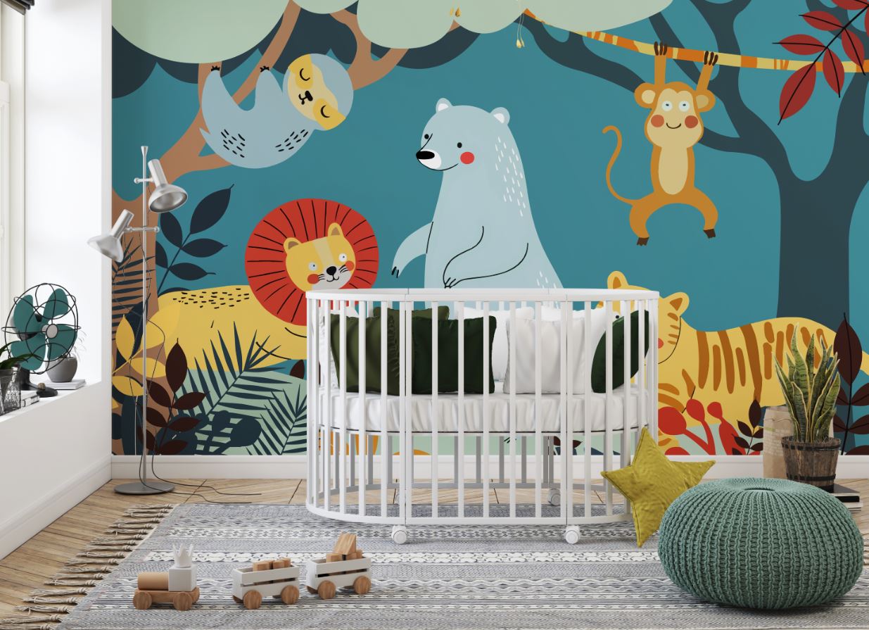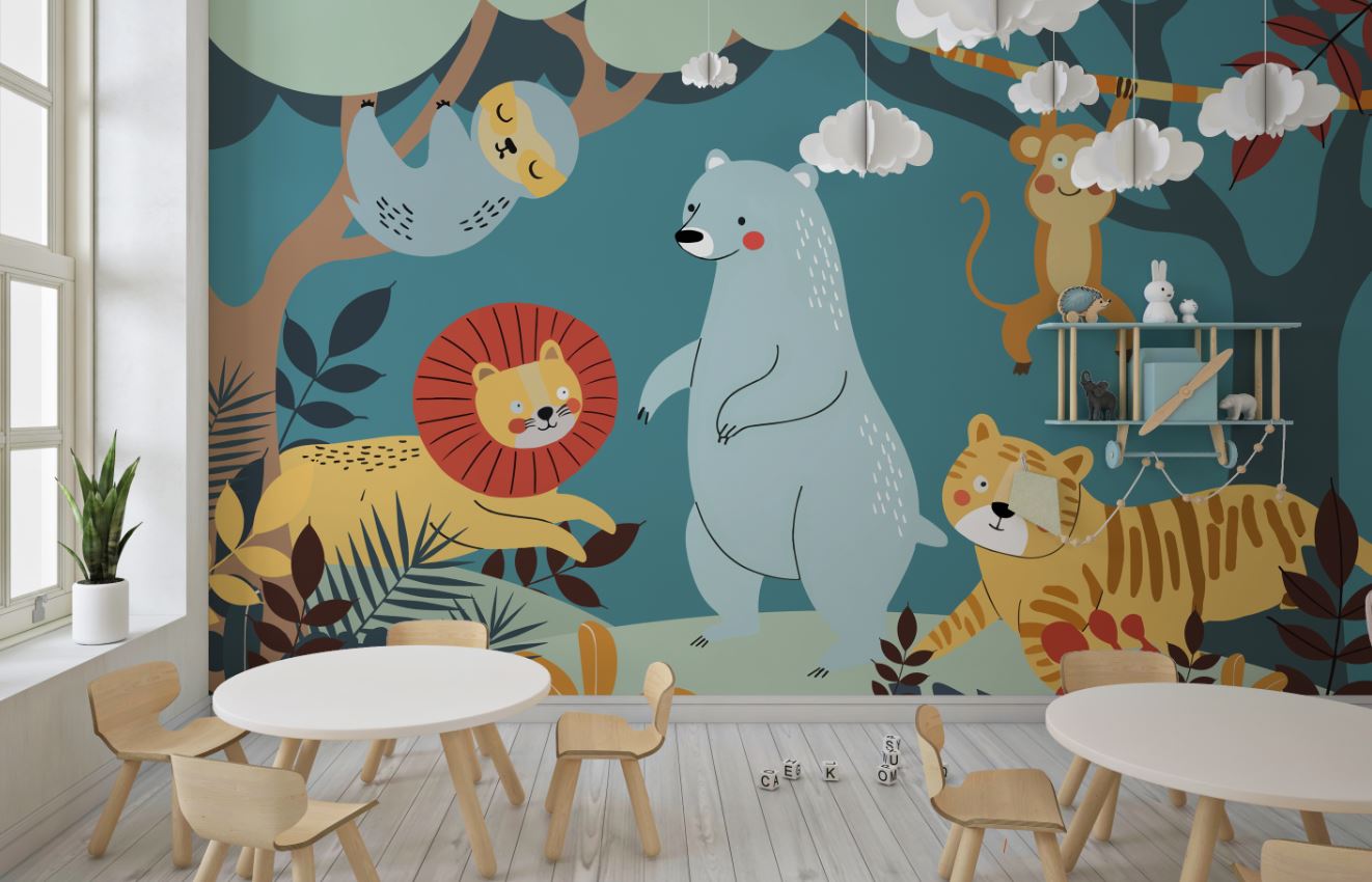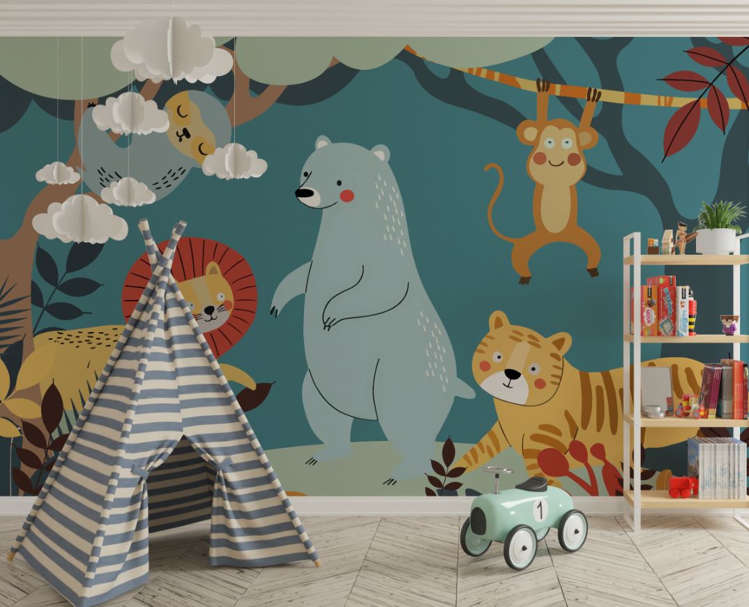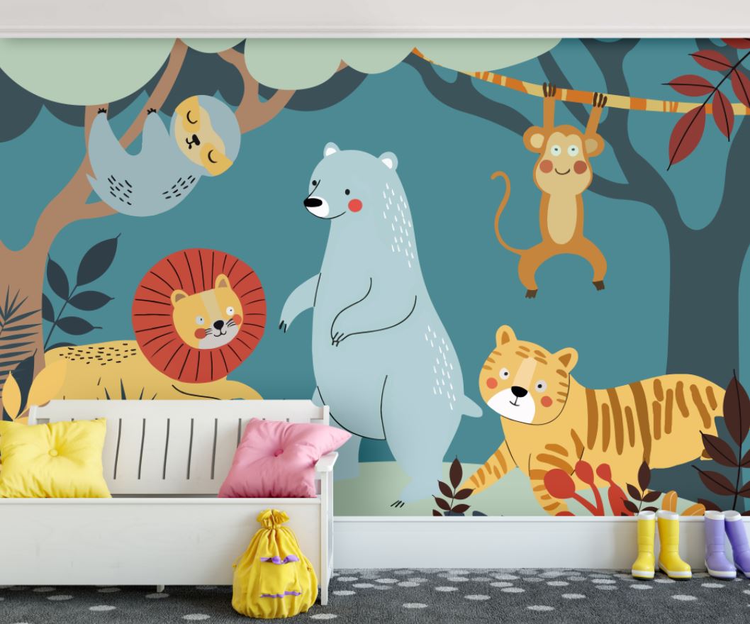 • Çocuk Odaları ve Kreşler için Sevimli Safari Hayvanları Duvar Kağıdı 3 boyutlu şekilde satın alın!