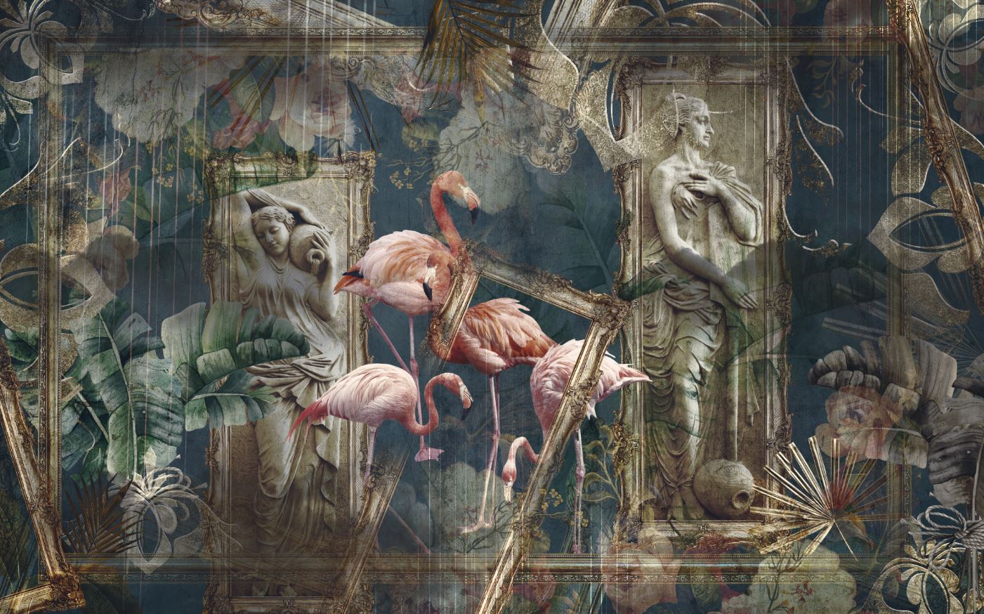 • Eski Gold Çerçeveler Heykel Kadınlar Vintage Antik Duvar Kağıdı 3 boyutlu şekilde satın alın!