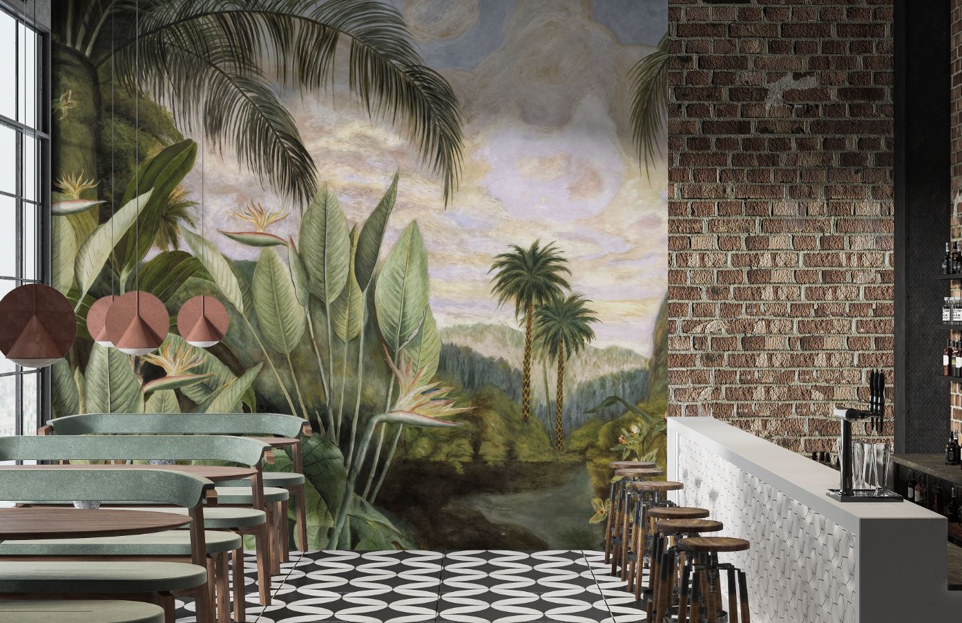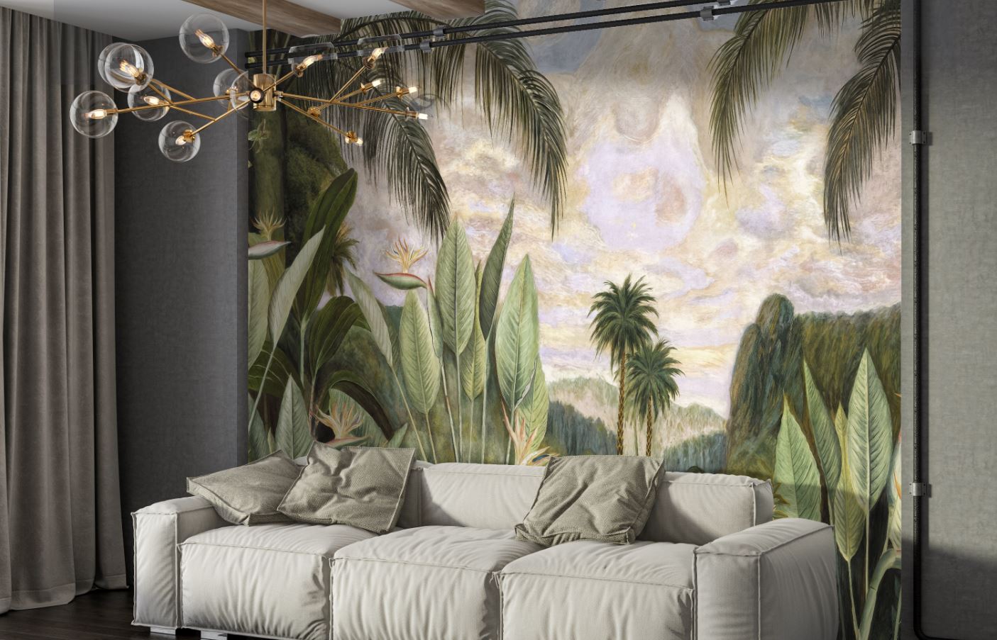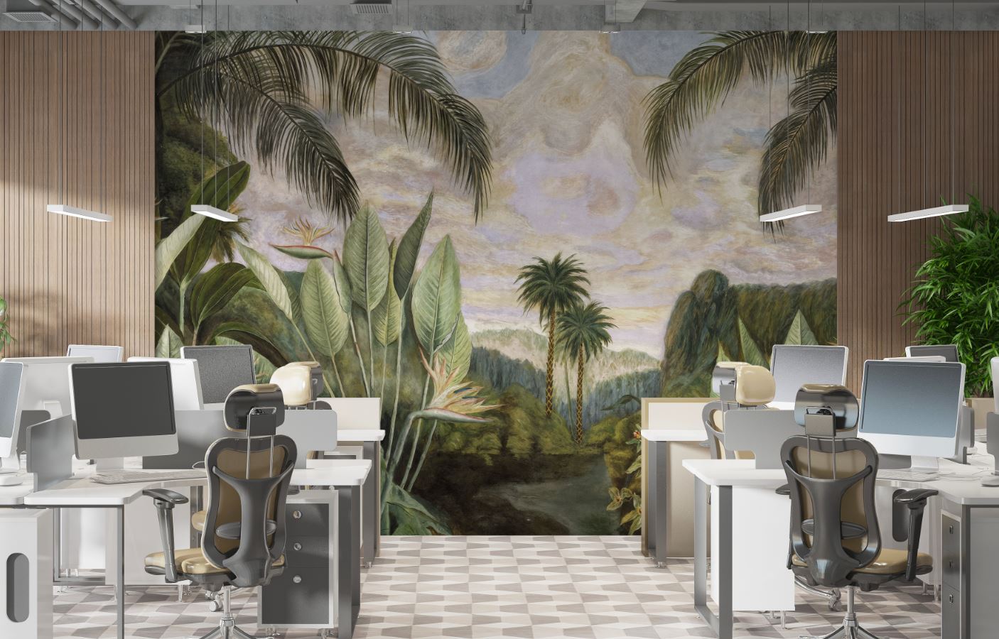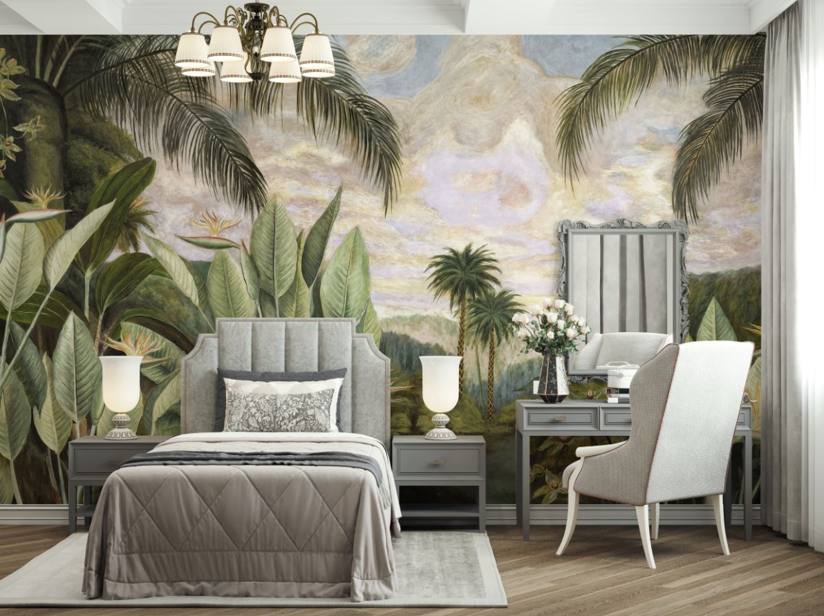 • Eskitme Tarzında Tropikal Yapraklar Manzara Duvar Kağıdı 3 boyutlu şekilde satın alın!