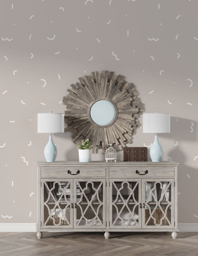 Geometrik Duvar Kağıdı Modelleri ve Fiyatları Bej Arka Plan Küçük Beyaz Şekiller