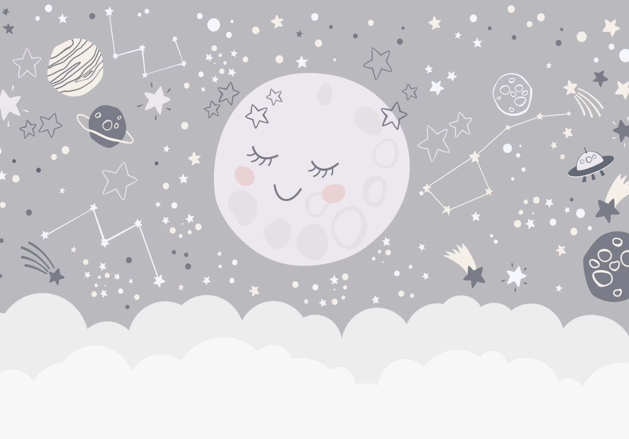 • Gri Renklerde Sevimli Ay ve Gezegenler Çocuk Odası Duvar Kağıdı 3 boyutlu şekilde satın alın!