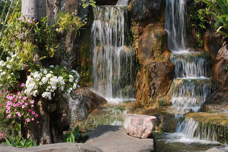 Kayalıklar Arasında Şelale ve Çiçekler Duvar Kağıdı