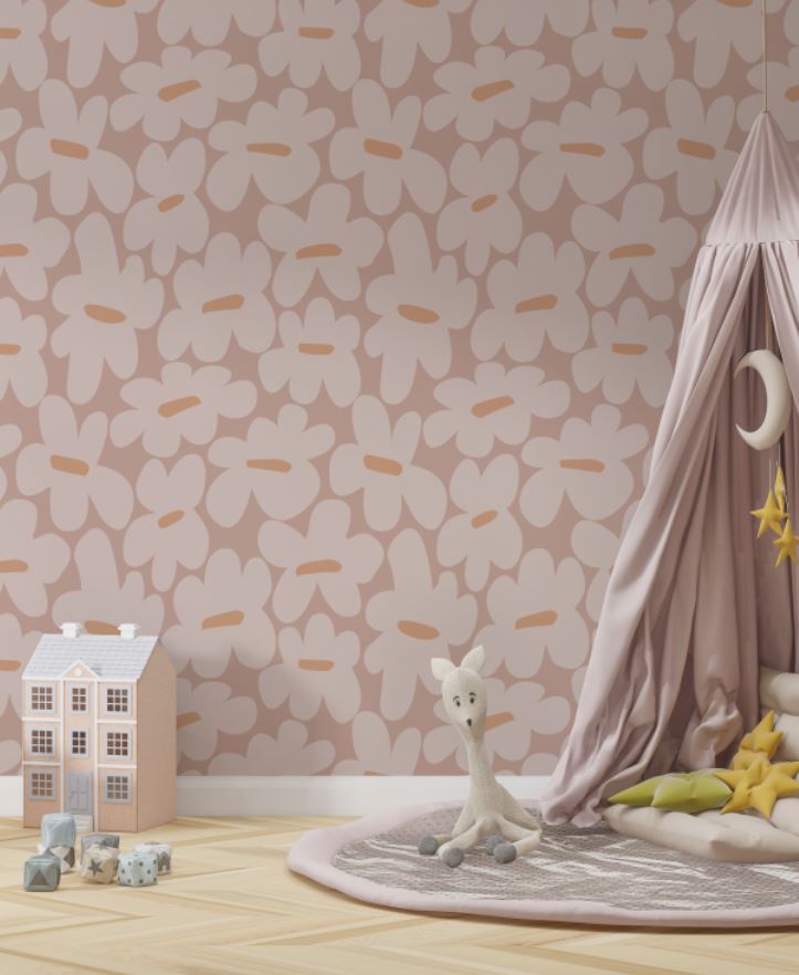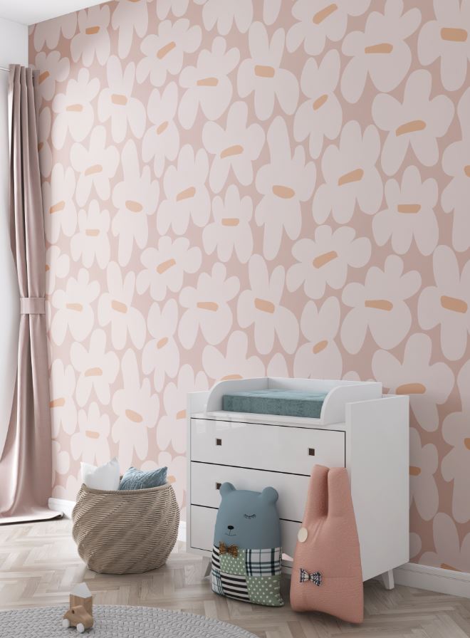 • Kibar Çiçekler Kız Çocuk Odası Çiçekli Duvar Kağıdı Modelleri 3 boyutlu şekilde satın alın!