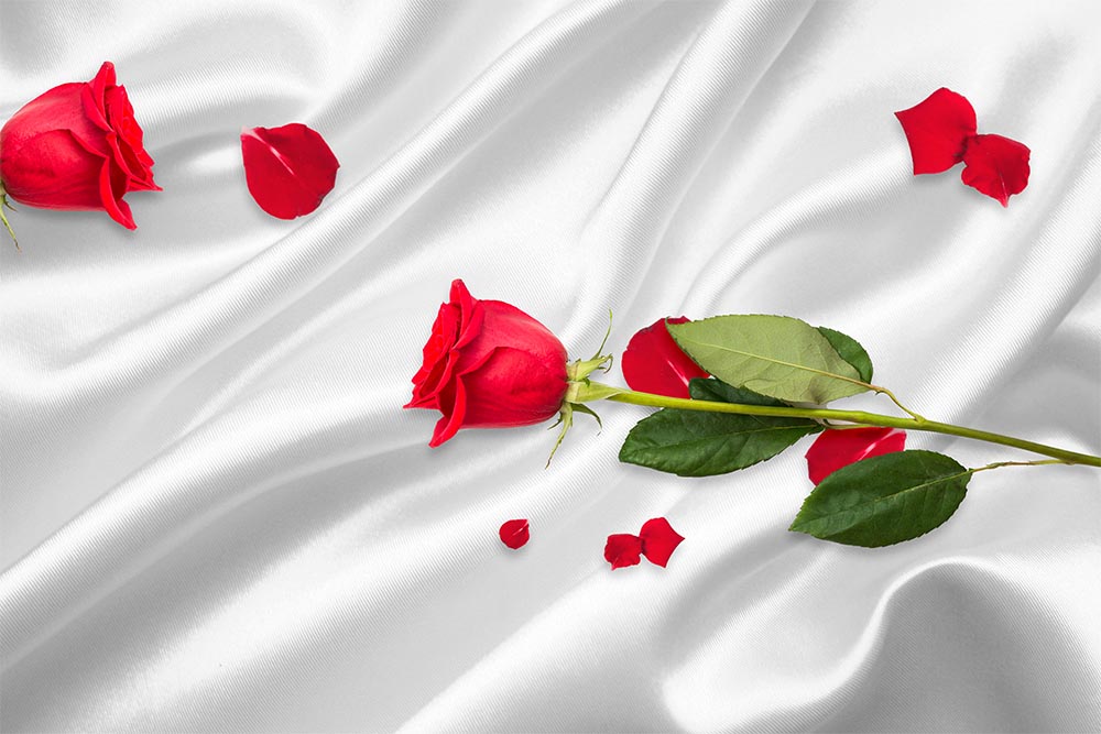 • Kırmızı Güller ve Yapraklar Duvar Kağıdı 3 boyutlu şekilde satın alın!