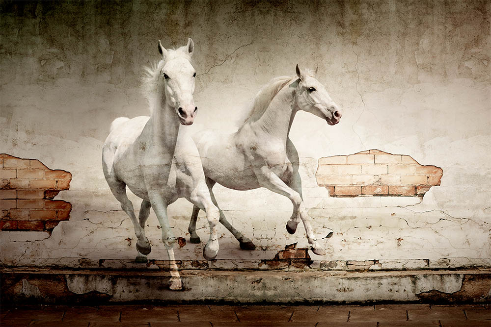 • Koşan Beyaz Atlar Duvar Kağıdı 3 boyutlu şekilde satın alın!