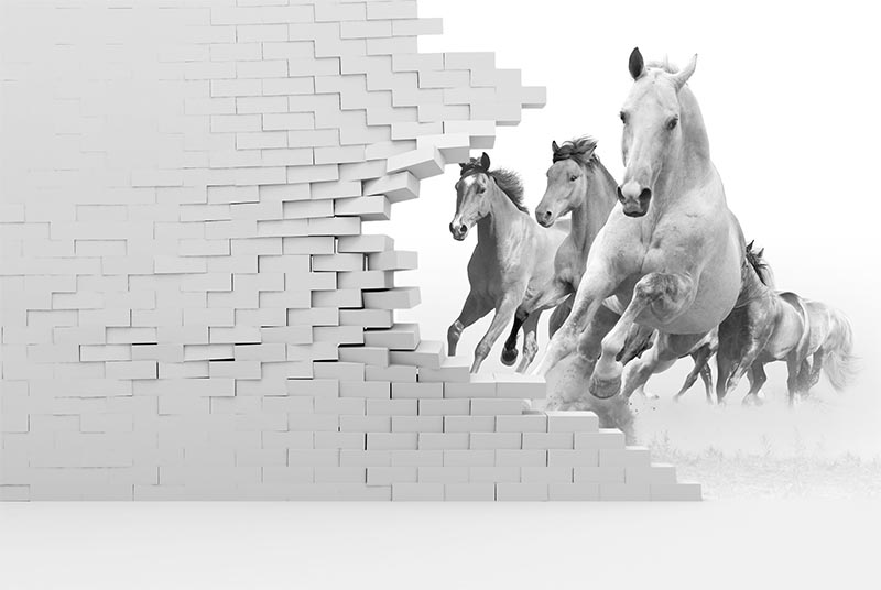 • Koşan Beyaz Atlar Duvar Kağıdı 2 3 boyutlu şekilde satın alın!