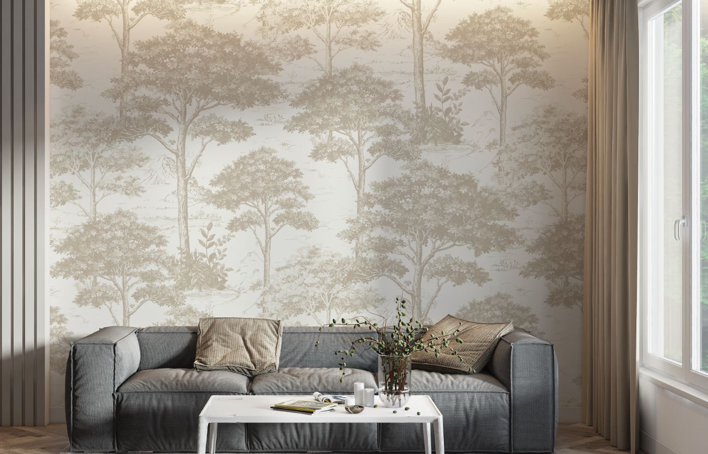 Krem Bej Ağaçlar Duvar Kağıdı Modelleri ve Fiyatları