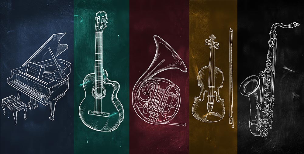 • Müzik Aletleri Renkli Duvar Kağıdı 3 boyutlu şekilde satın alın!
