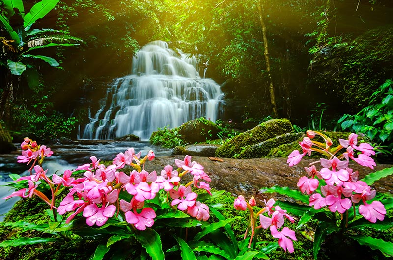 Pembe Çiçekler Arasında Muhteşem Şelale