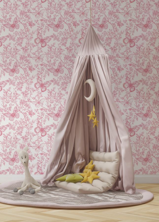 • Pembe Kelebekler ve Çiçekler Kız Çocuk Odası Duvar Kağıdı 3 boyutlu şekilde satın alın!