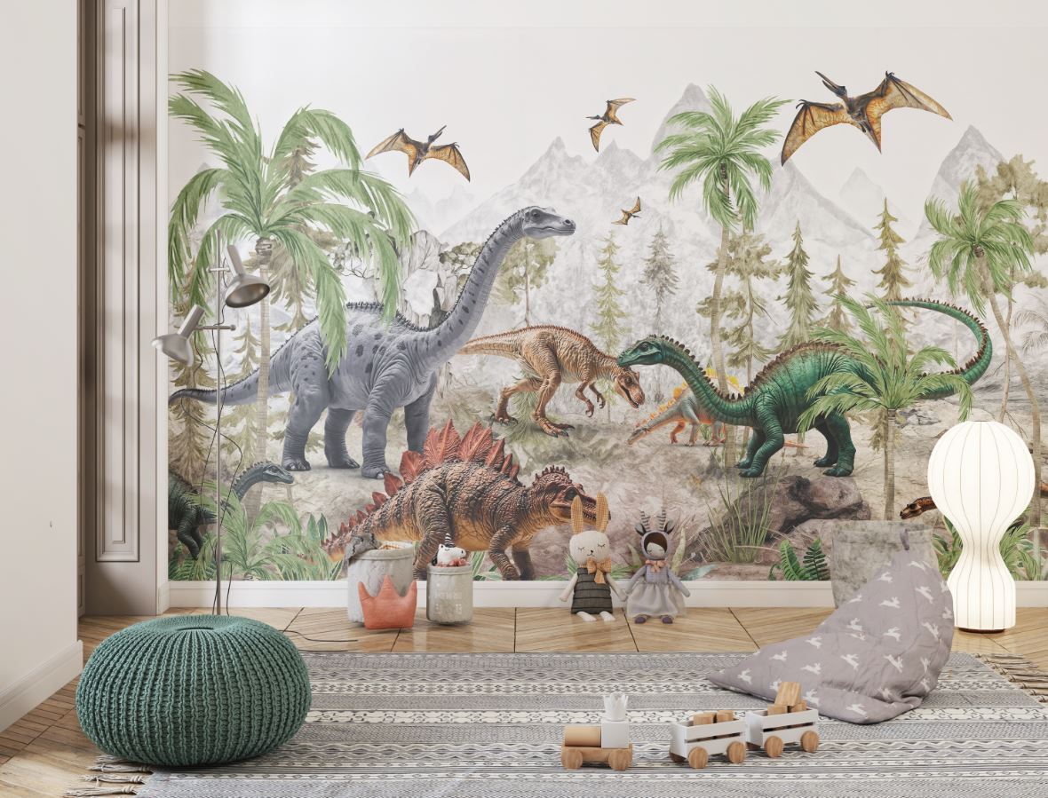 Renkli Dinozorlar Çocuk ve Kreş Duvar Kağıdı Tasarımı