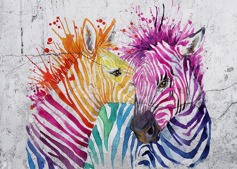 • Renkli Zebralar Duvar Kağıdı 3 boyutlu şekilde satın alın!