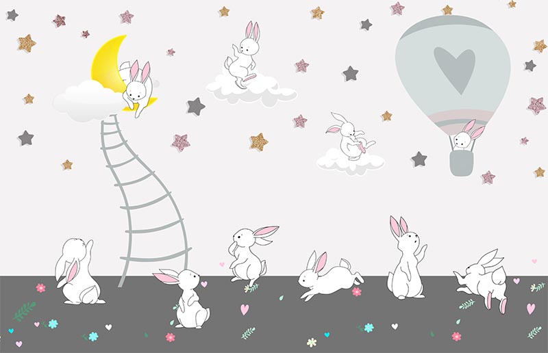 • Sevimli Beyaz Tavşanlar Duvar Kağıdı 3 boyutlu şekilde satın alın!