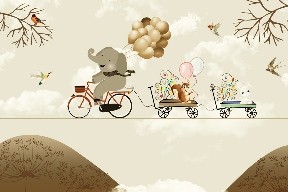 • Çocuk 192 Sevimli Fil Duvar Kağıdı 3 boyutlu şekilde satın alın!