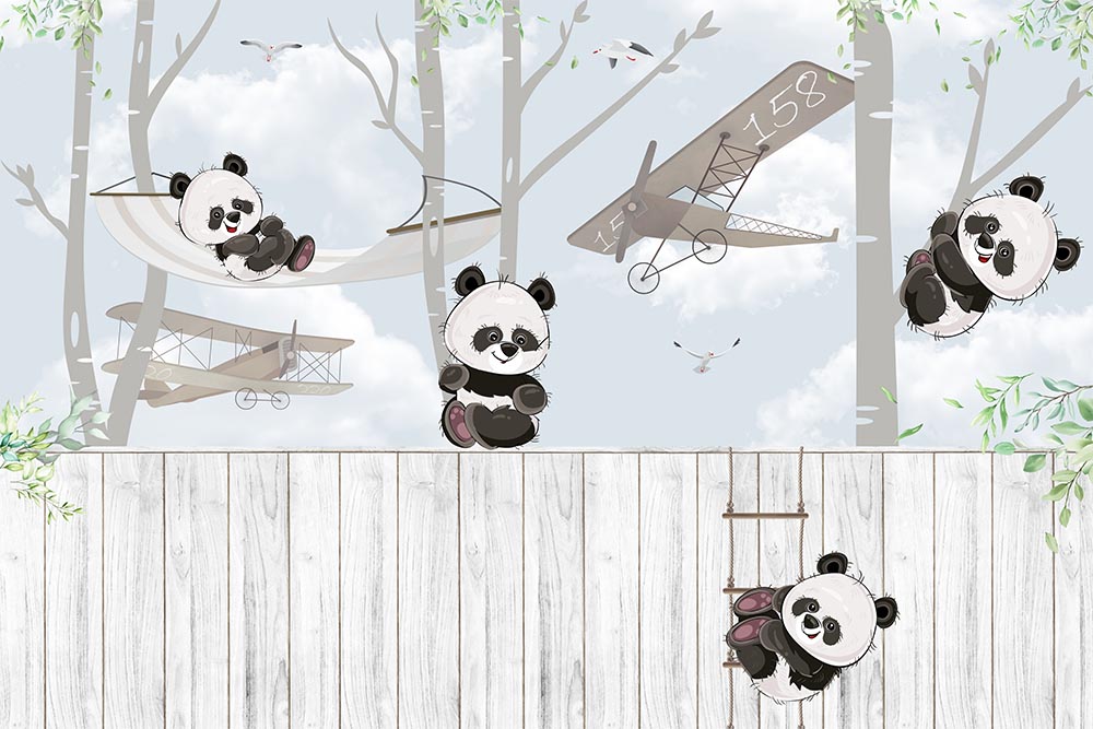 • Sevimli Pandaların Dünyası Çocuk Odası Duvar Kağıdı 3 boyutlu şekilde satın alın!
