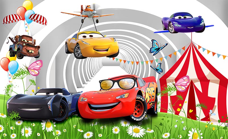 • Şimşek Mcqueen Duvar Kağıdı 9 3 boyutlu şekilde satın alın!