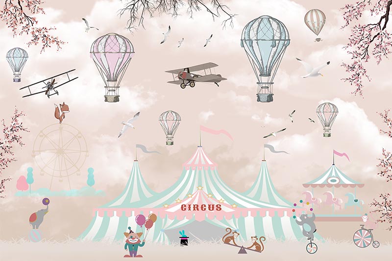 • Sirk Temalı Uçan Balonlar Duvar Kağıdı 3 boyutlu şekilde satın alın!
