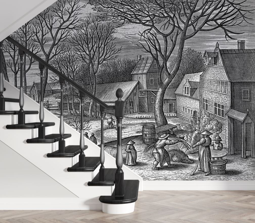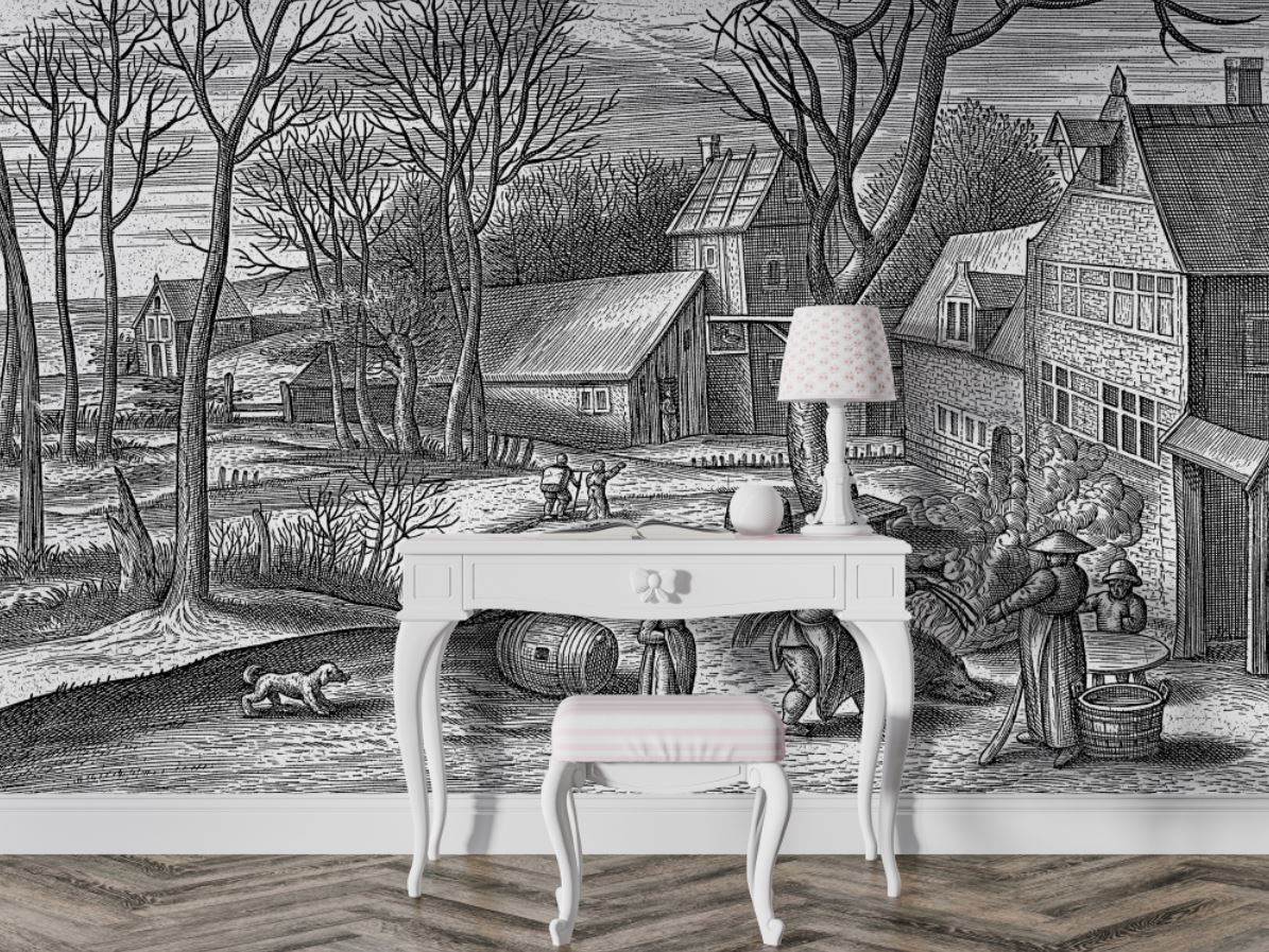 • Siyah Beyaz Karakalem Tarz Antik Duvar Kağıdı 3 boyutlu şekilde satın alın!