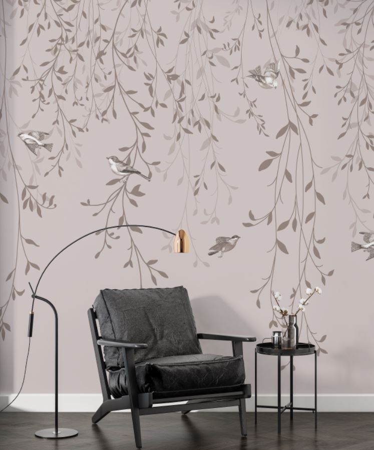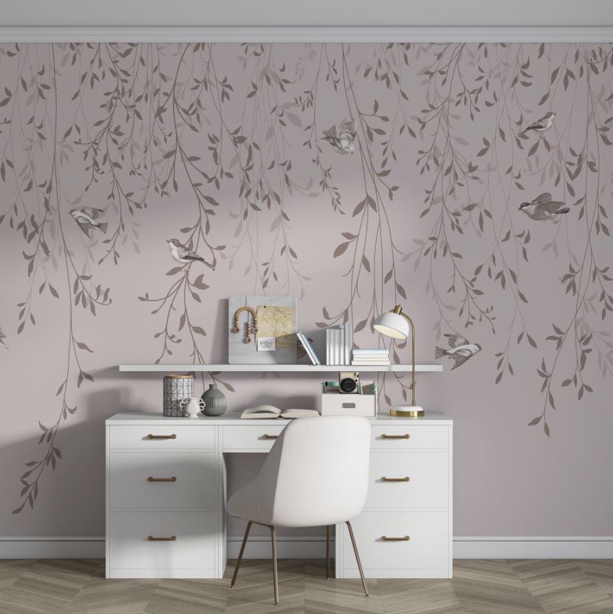 • Tavandan sarkan Dallar ve Kuşlar Vintage Tarz Duvar Kağıdı 3 boyutlu şekilde satın alın!