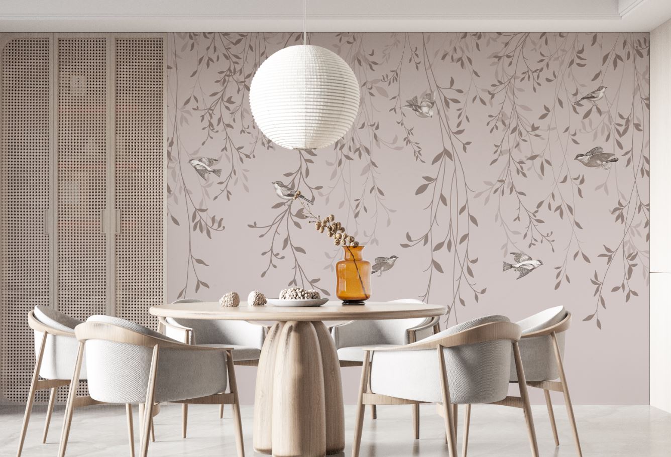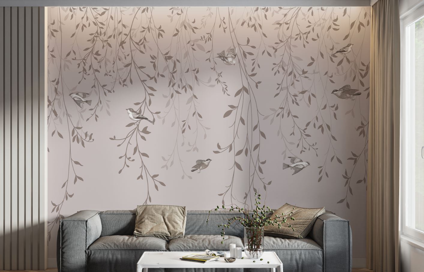 Tavandan sarkan Dallar ve Kuşlar Vintage Tarz Duvar Kağıdı