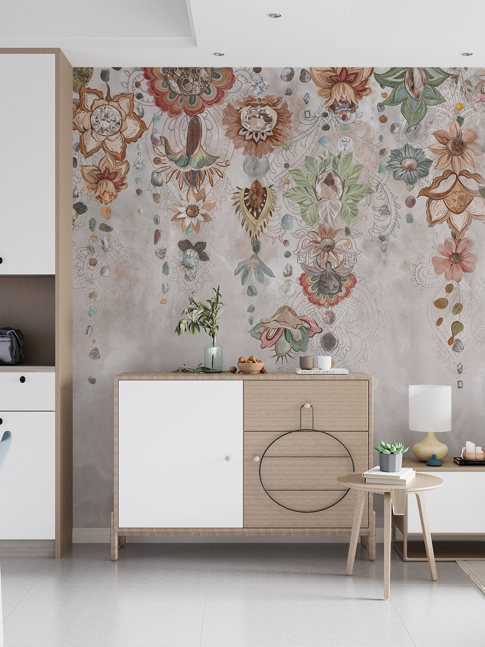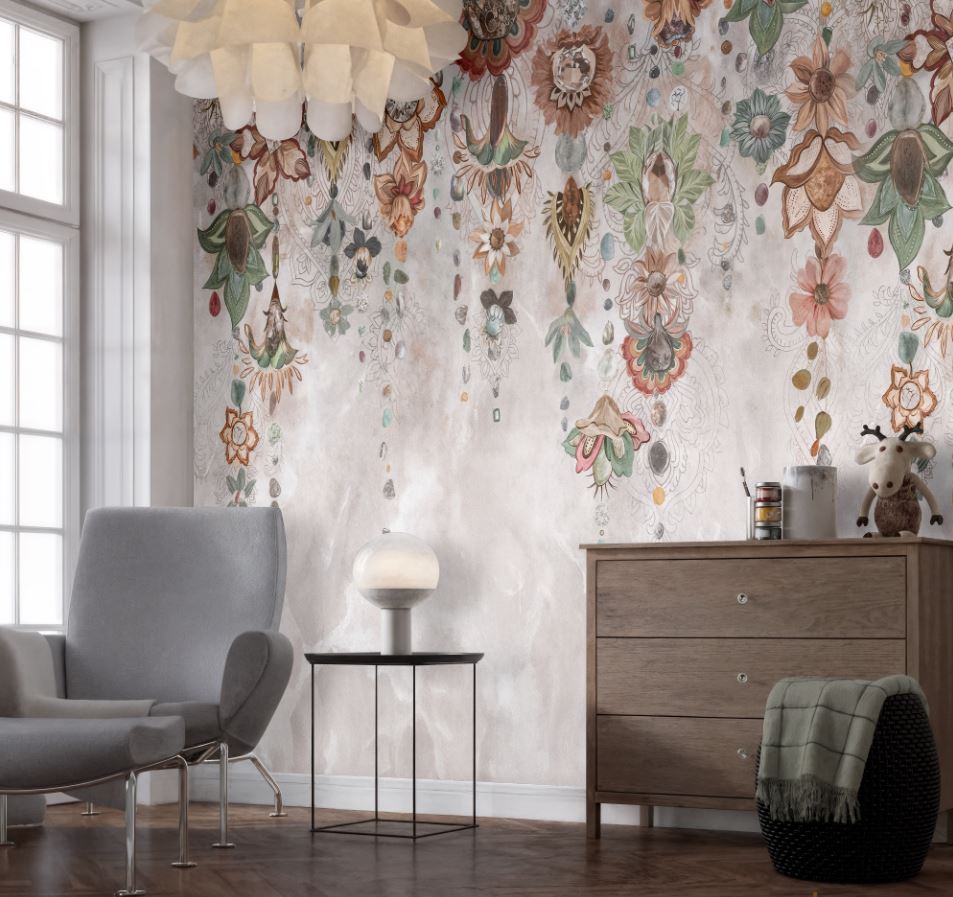 • Tavandan Sarkan Renkli Çiçekler Son Moda Duvar Kağıdı Modelleri 3 boyutlu şekilde satın alın!