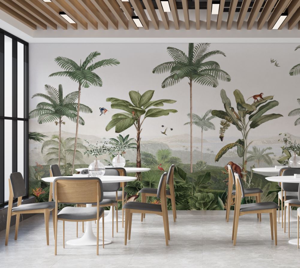 Tropikal Ağaçlar ve Yapraklar Arasında Safari Hayvanları
