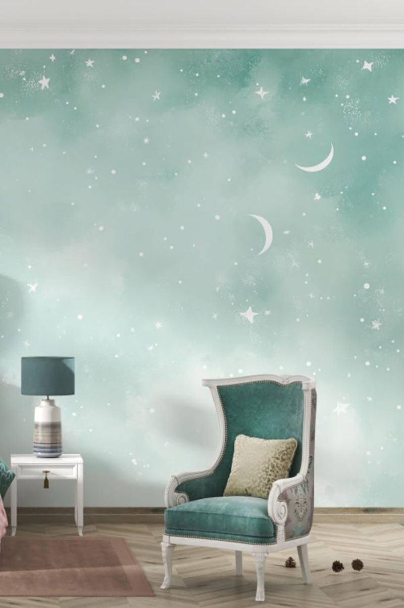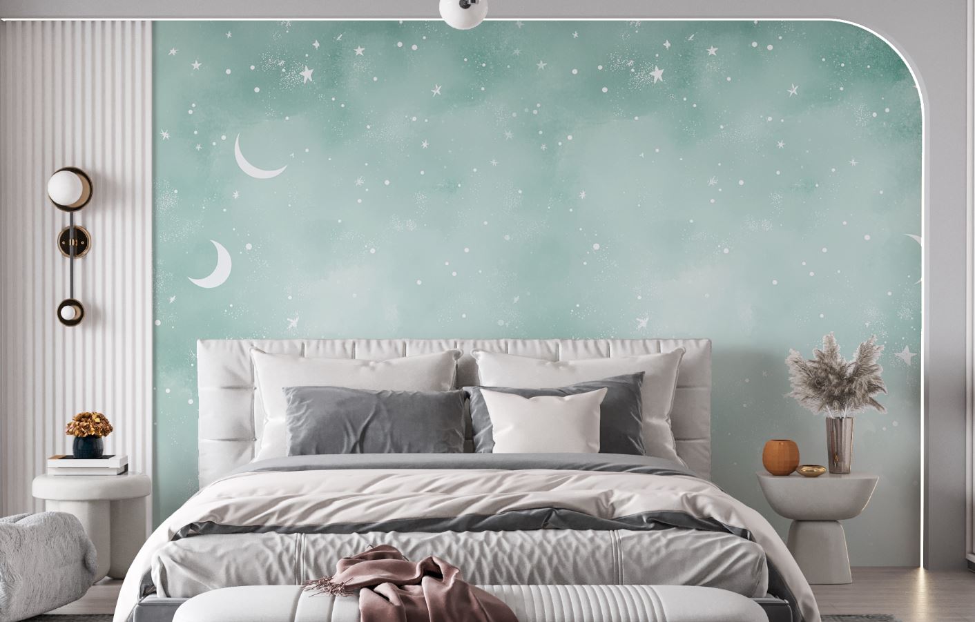 • Turkuaz Tonlarda Gökyüzü ve Yıldızlar Çocuk Odası Modelleri 3 boyutlu şekilde satın alın!