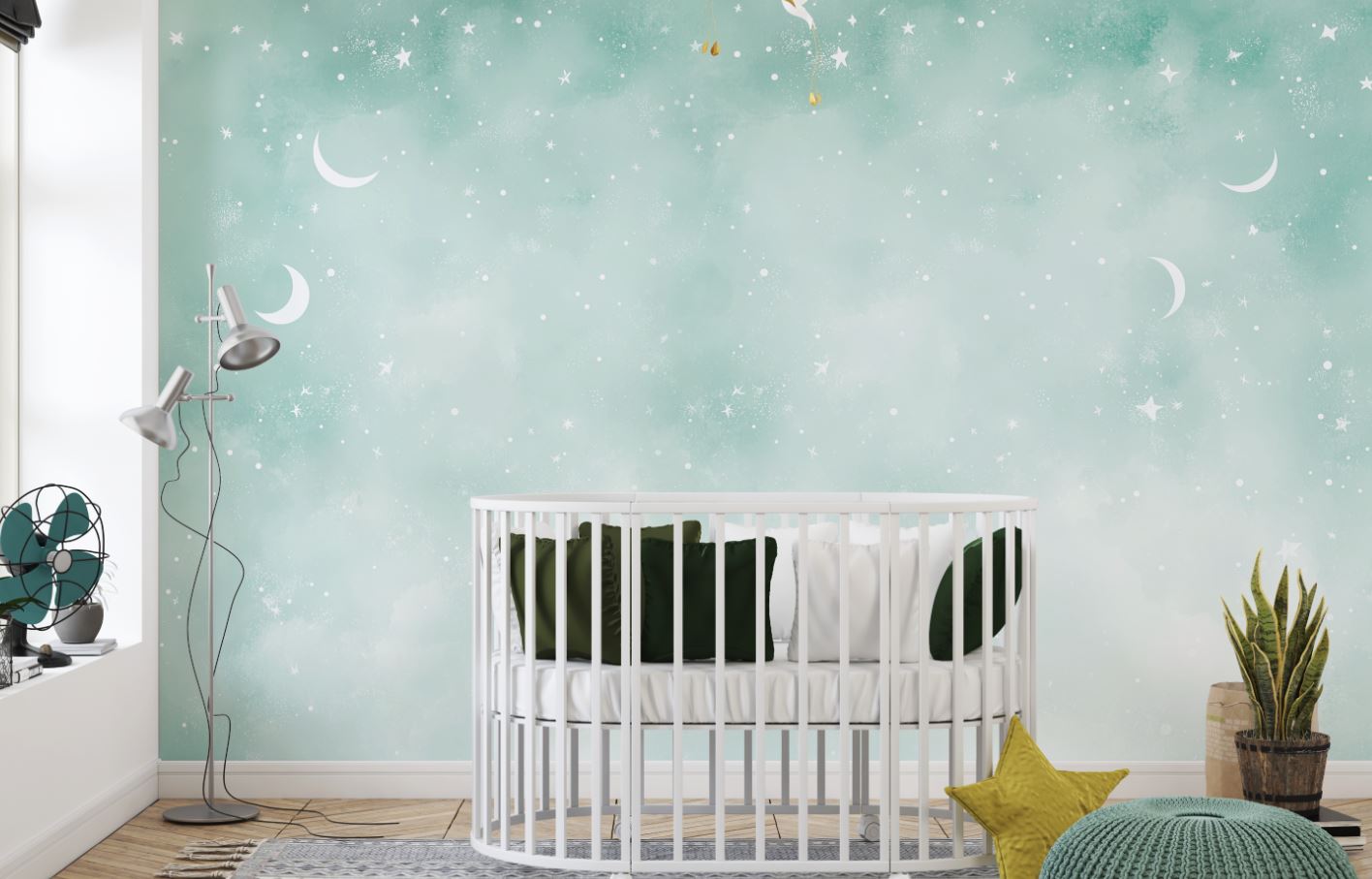 Turkuaz Tonlarda Gökyüzü ve Yıldızlar Çocuk Odası Modelleri