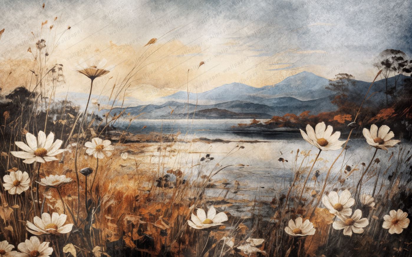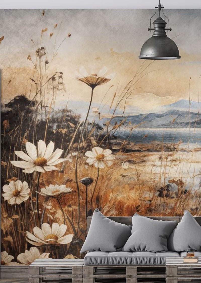 • Vintage Tarz Papatyalar Duvar Kağıdı Modeli 3 boyutlu şekilde satın alın!