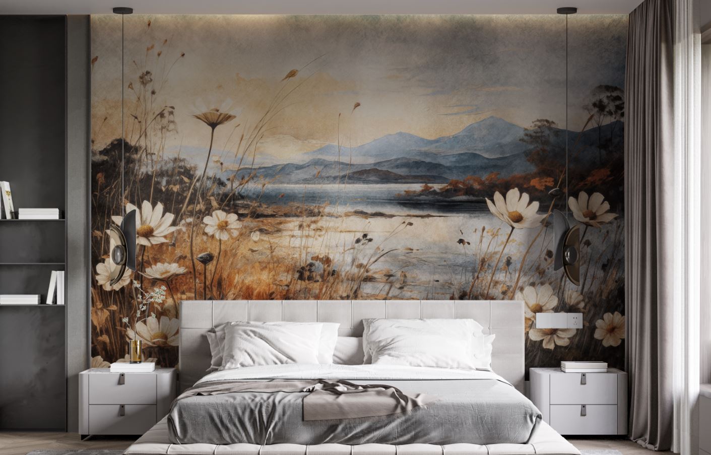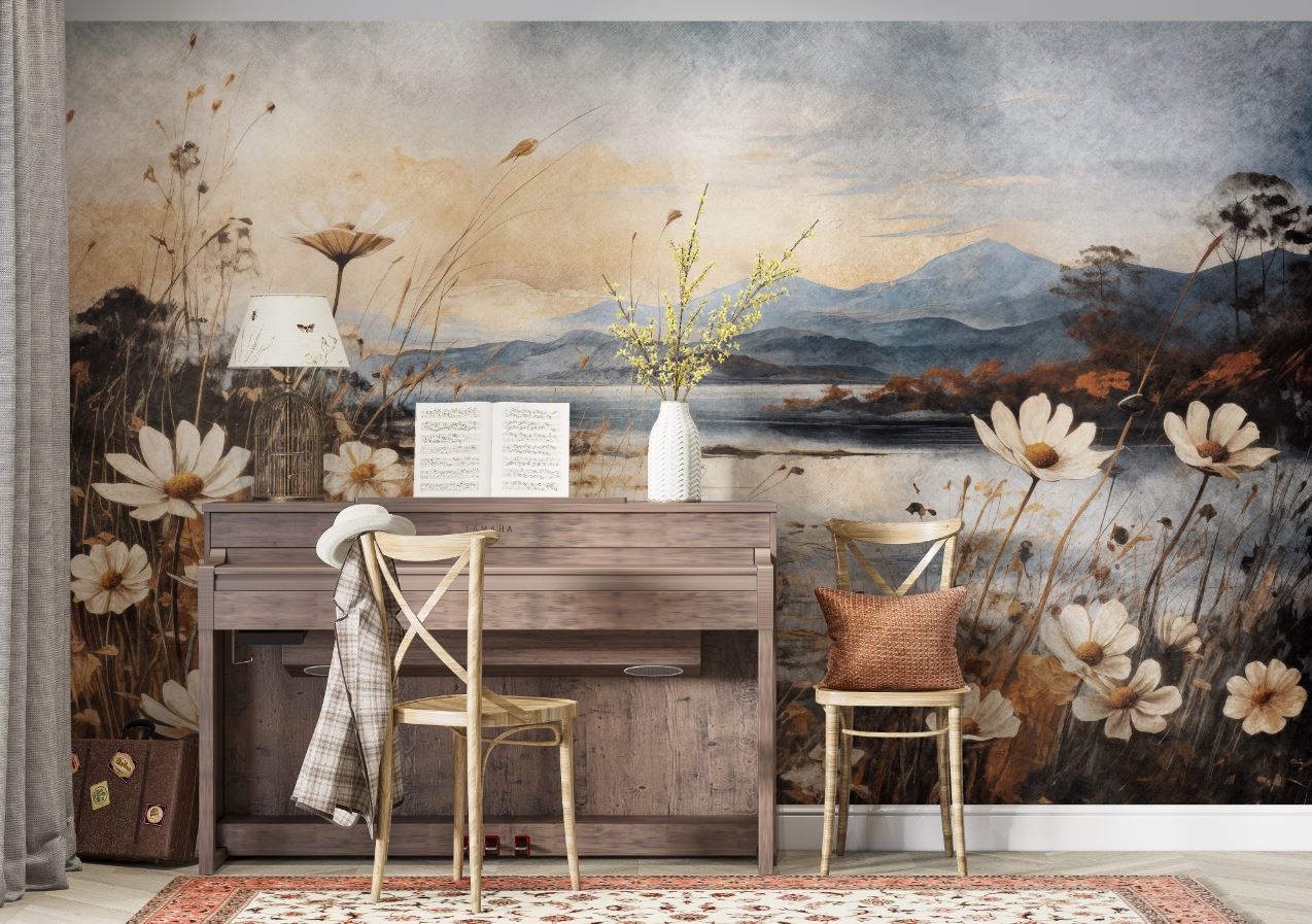 Vintage Tarz Papatyalar Duvar Kağıdı Modeli