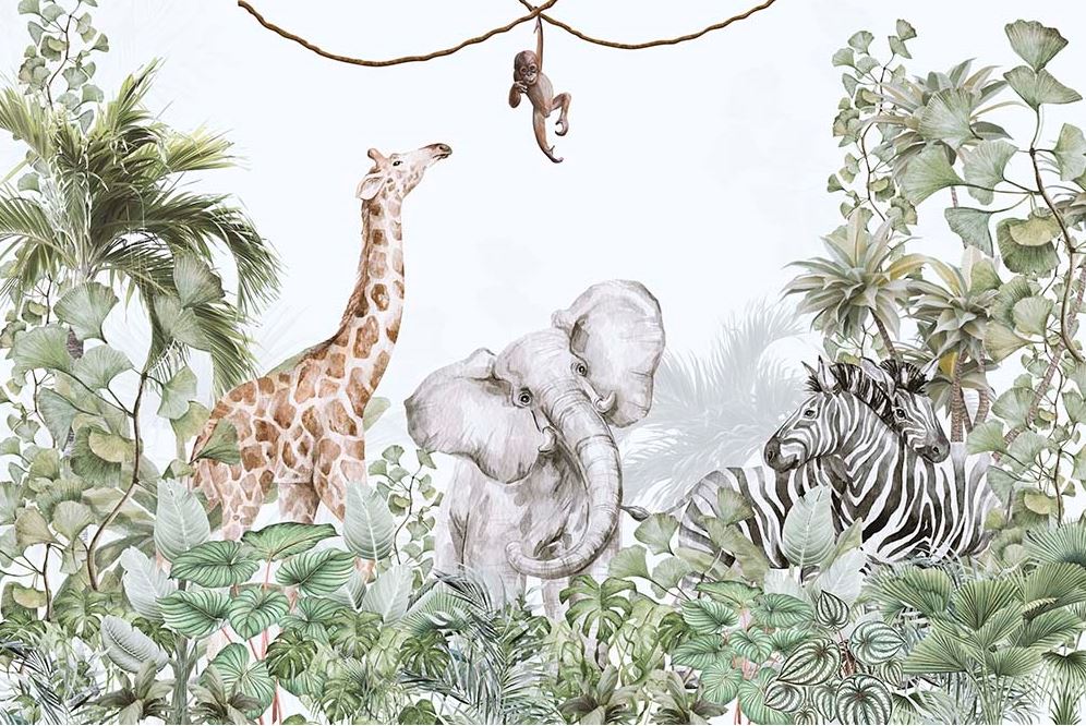 • Yapraklar Arasında Safari Hayvanları Duvar Kağıdı 3 boyutlu şekilde satın alın!