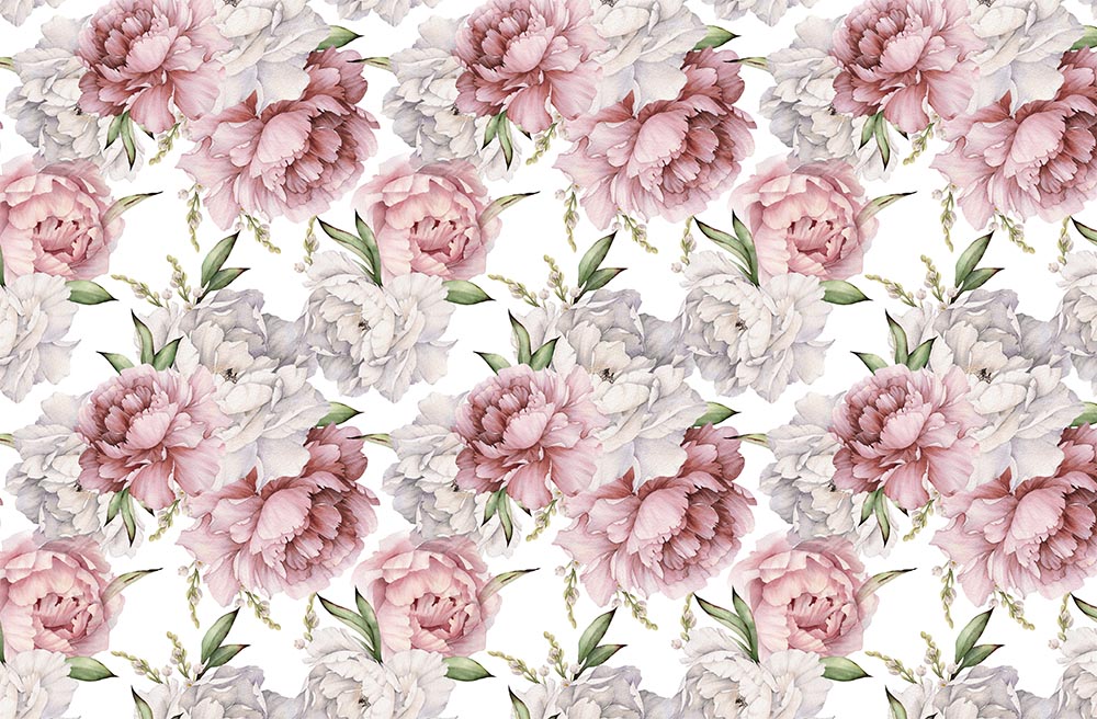 • Yeşil Yapraklar Pembe Beyaz Çiçekler Duvar Kağıdı 3 boyutlu şekilde satın alın!