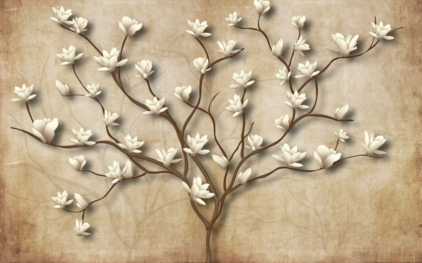 • 3 Boyutlu - 3D Ağaç ve Çiçekler Duvar Kağıdı 3 boyutlu şekilde satın alın!