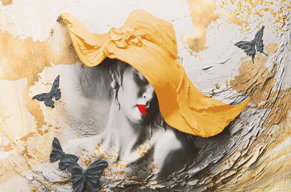 • Sarı Şapkalı Kadın 3 Boyutlu Duvar Kağıdı 3 boyutlu şekilde satın alın!