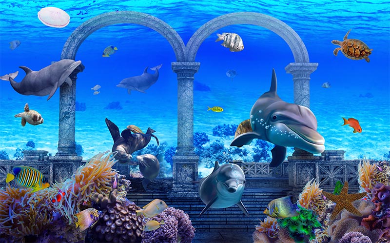 3 Boyutlu Derinlik Akvaryum - Yunus Balıkları