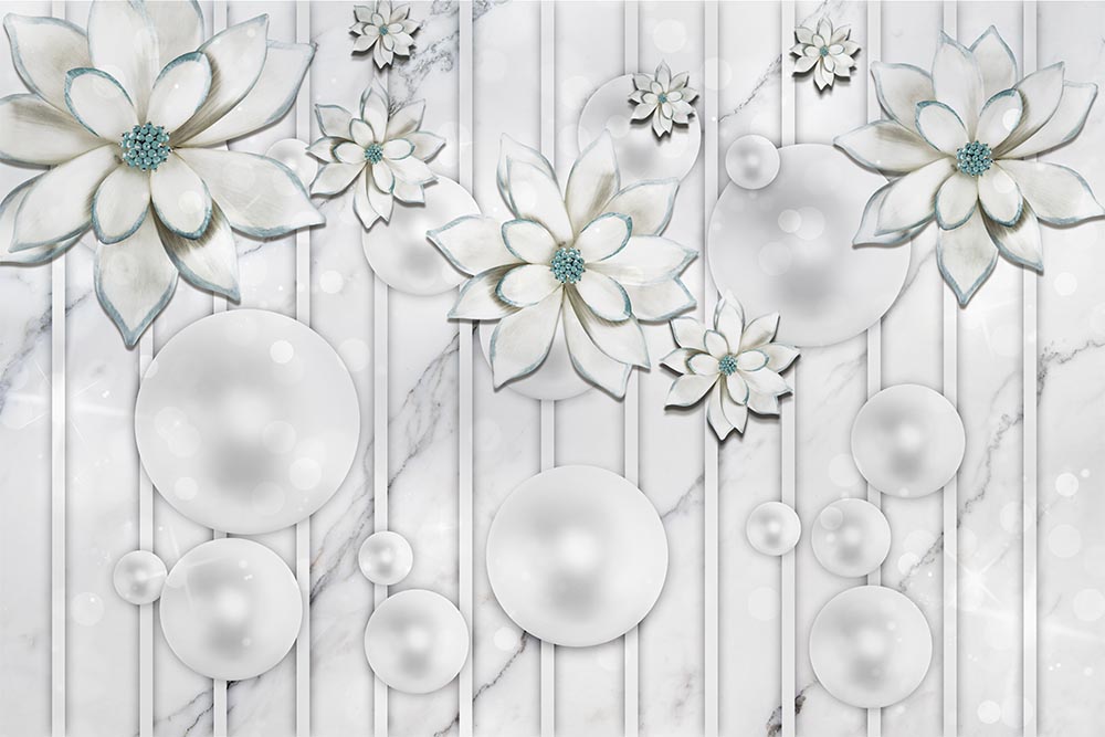 • 3 Boyutlu Duvar Kağıdı Turkuaz Beyaz Çiçekler 3 boyutlu şekilde satın alın!