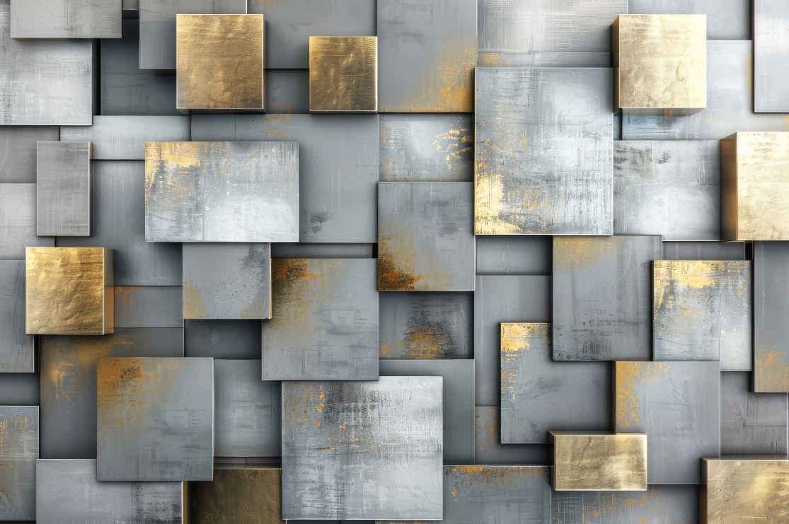 • 3 Boyutlu Geometrik Şekilli Duvar Kağıdı , Gri Gold Tonlarda 3D Duvar Kağıdı Modeli 3 boyutlu şekilde satın alın!